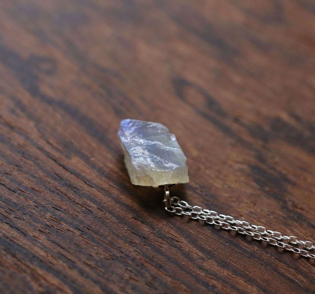 レインボームーンストーンと銀のネックレス+標本セット【天然鉱物/SV925】